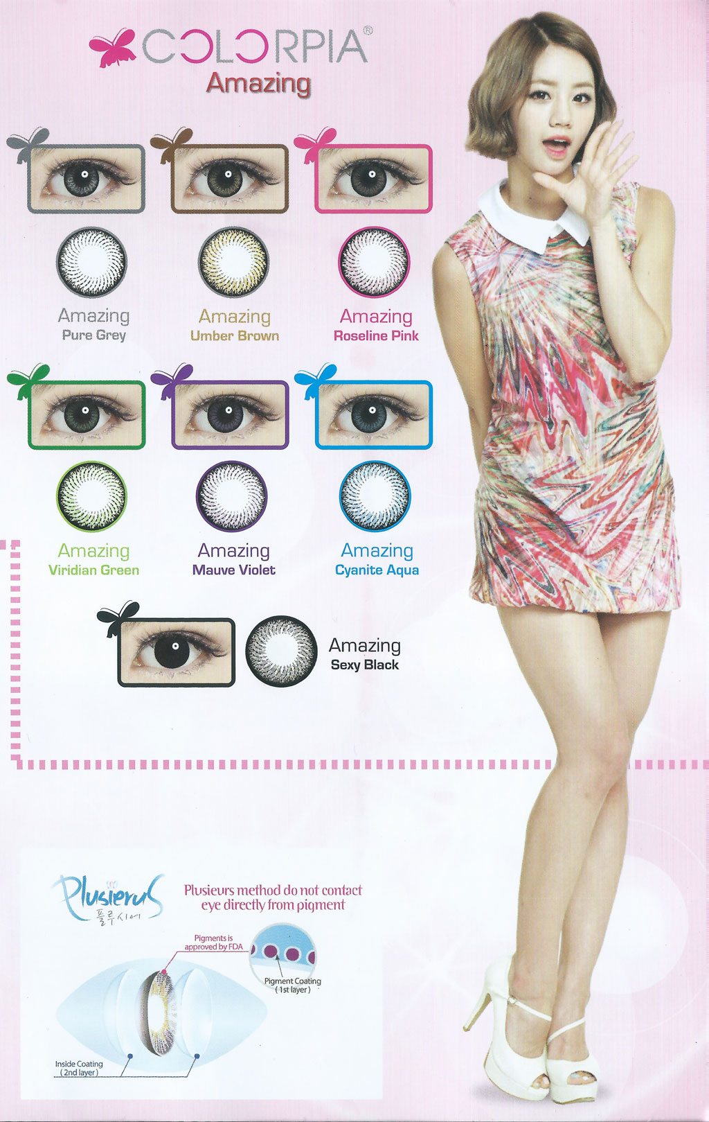 Colorpia Amazing offers a stunning selection of 7 vibrant colors, each featuring unique patterns unlike any other colored lenses on the market. Utilizing the advanced Plusieurs method, the lens ensures that FDA-approved color pigments never come into direct contact with your eyes, providing all-day comfort and safety. Designed for both style and wearability, Colorpia Amazing lets you express yourself with confidence while keeping your eyes feeling fresh. Look amazing, feel amazing—with Colorpia Amazing!